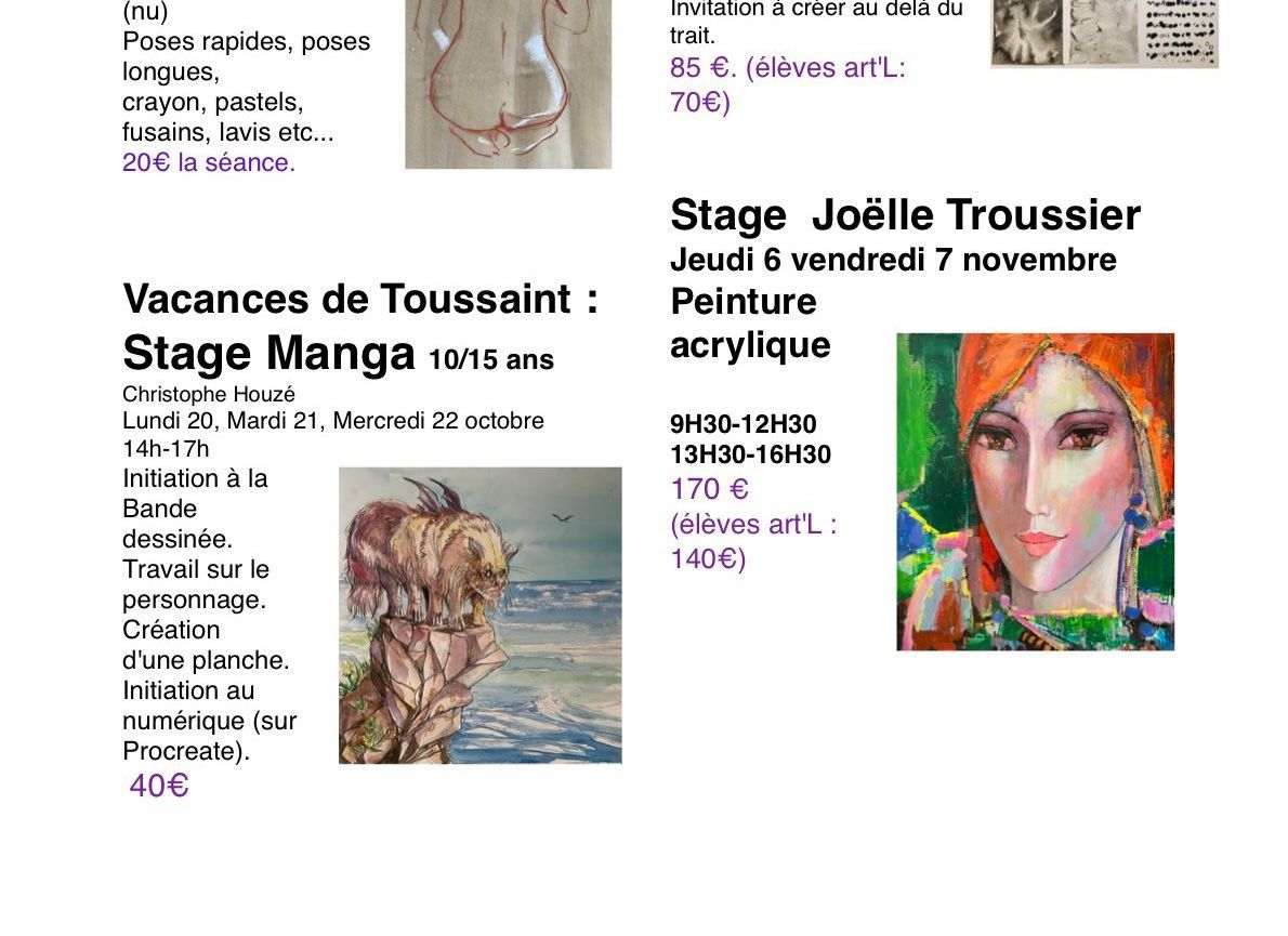 art'L propose une palette de cours hebdomadaires pour tous les âges, pour améliorer votre technique, rechercher votre propre expression.